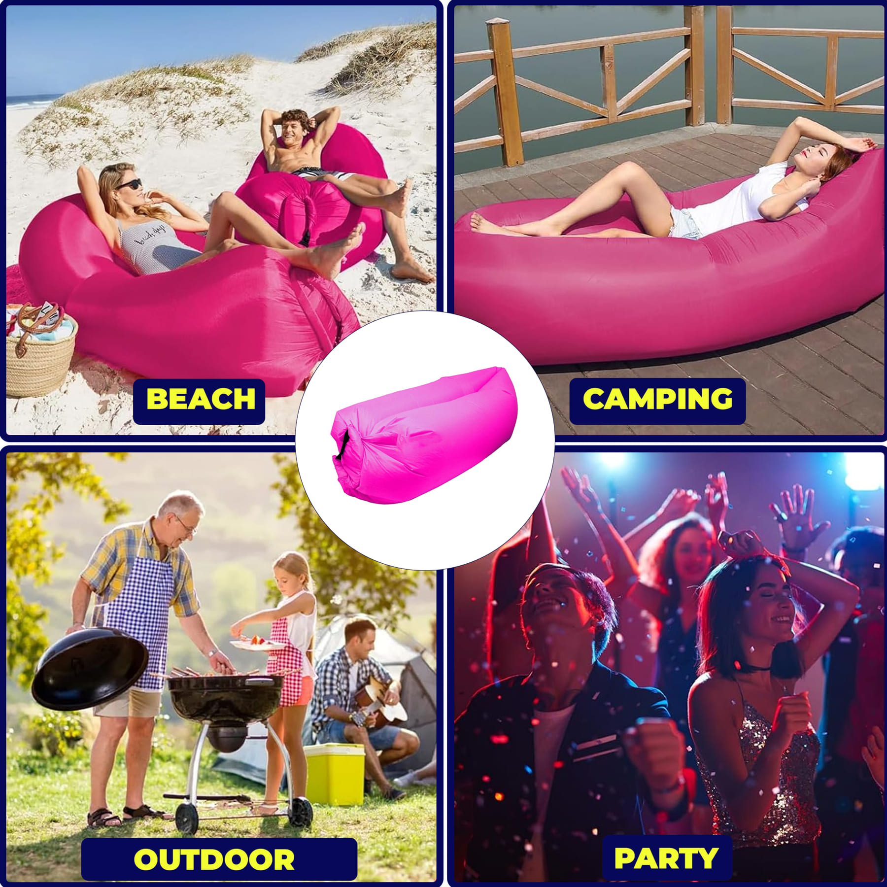 Pink Inflatable Sofa Air Bag Lounger Chair Comfort Outdoor Camping Beach Relax