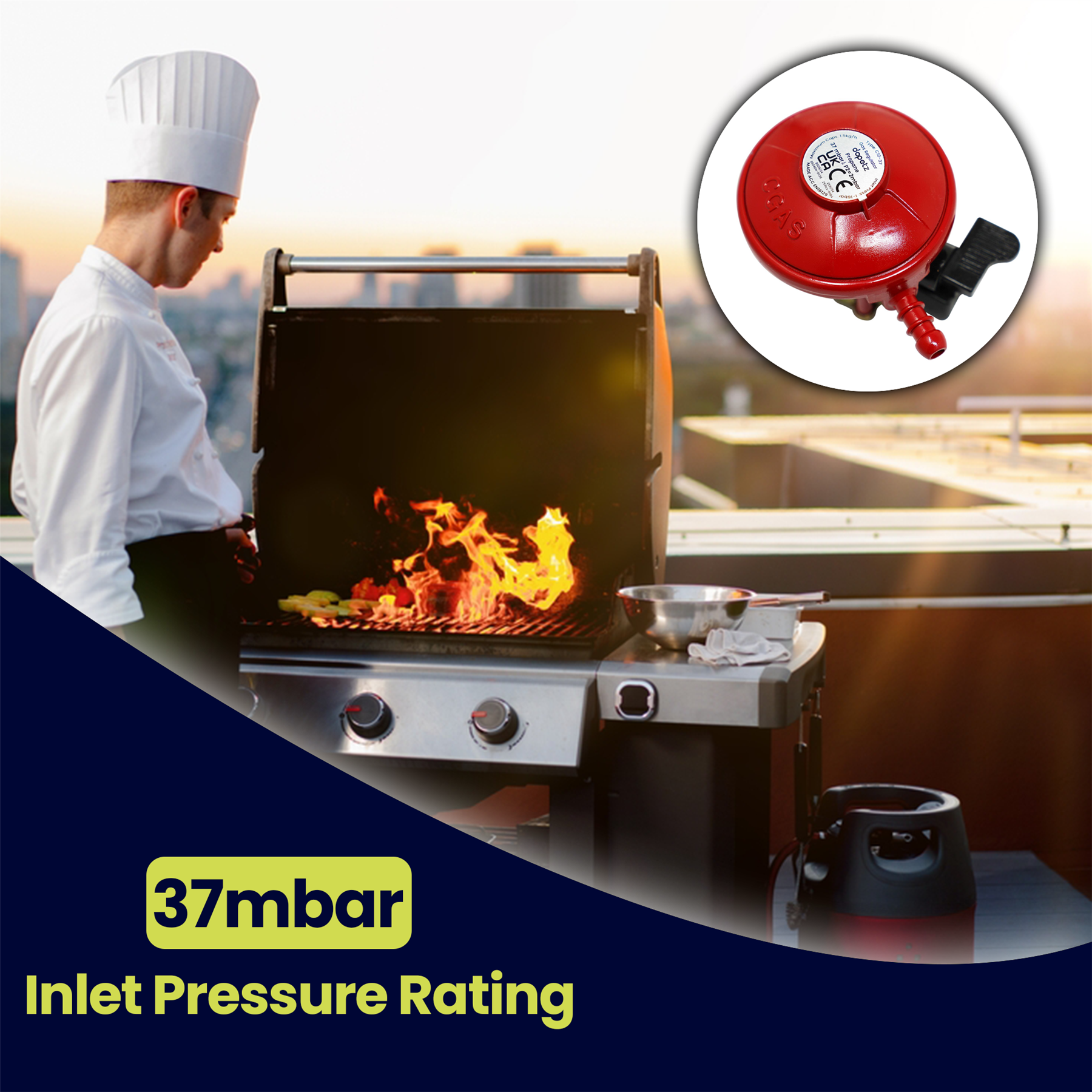 • Complete Propane Regulator Kit: Includes a 27mbar propane regulator and a 2-meter gas hose for a hassle-free connection to propane cylinders.