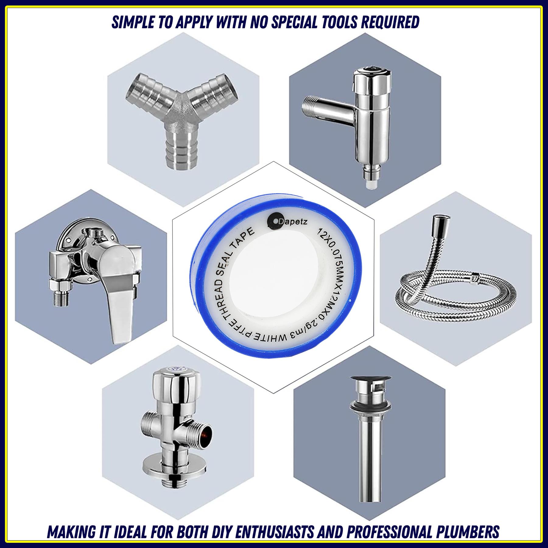 High-Quality PTFE Tape: Made from premium PTFE material, ensuring durability and reliable performance for all plumbing tasks.