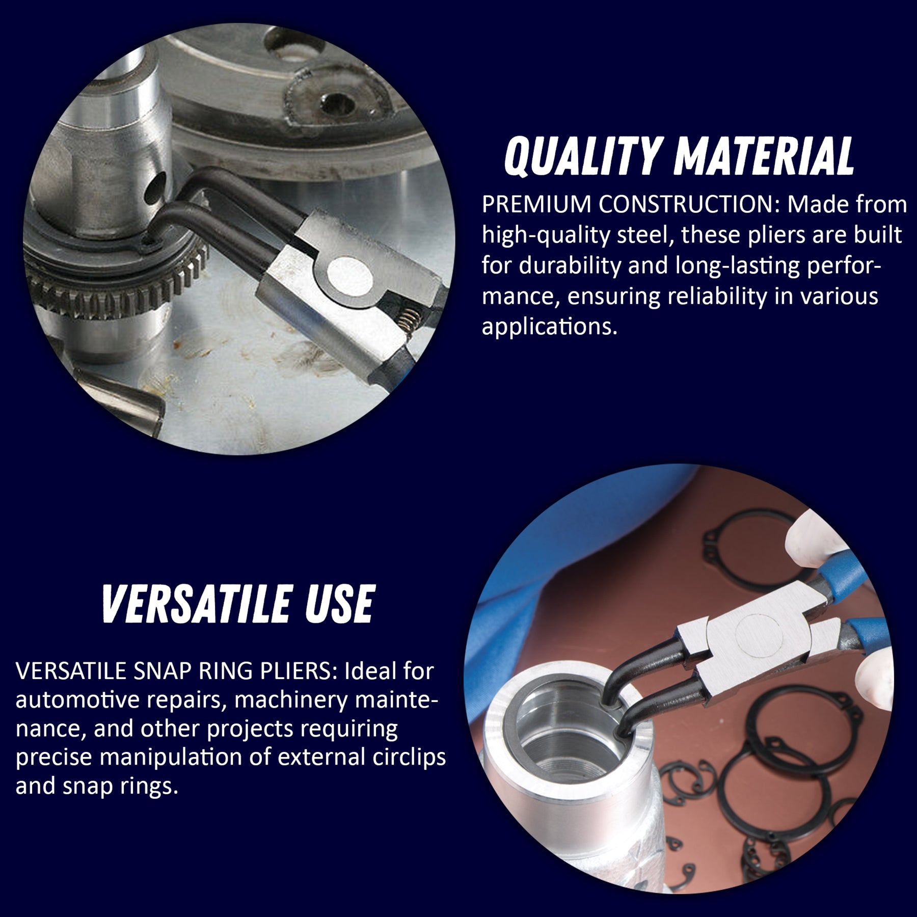 Versatile Snap Ring Pliers: Perfect for automotive repairs, machinery maintenance, and general mechanical tasks involving external circlips.
