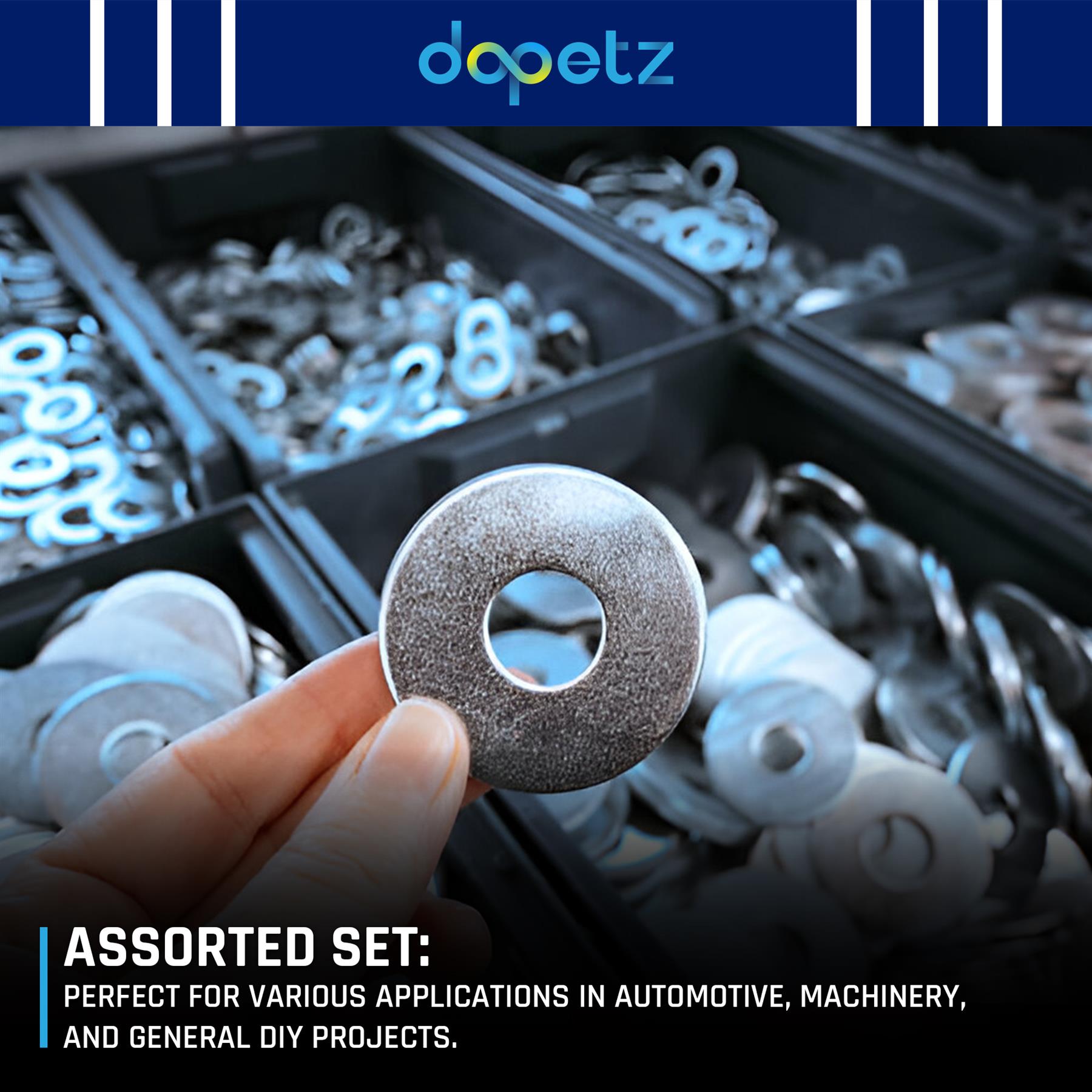 Quick Size Identification: Clearly arranged sections make selecting the correct washer fast and efficient.