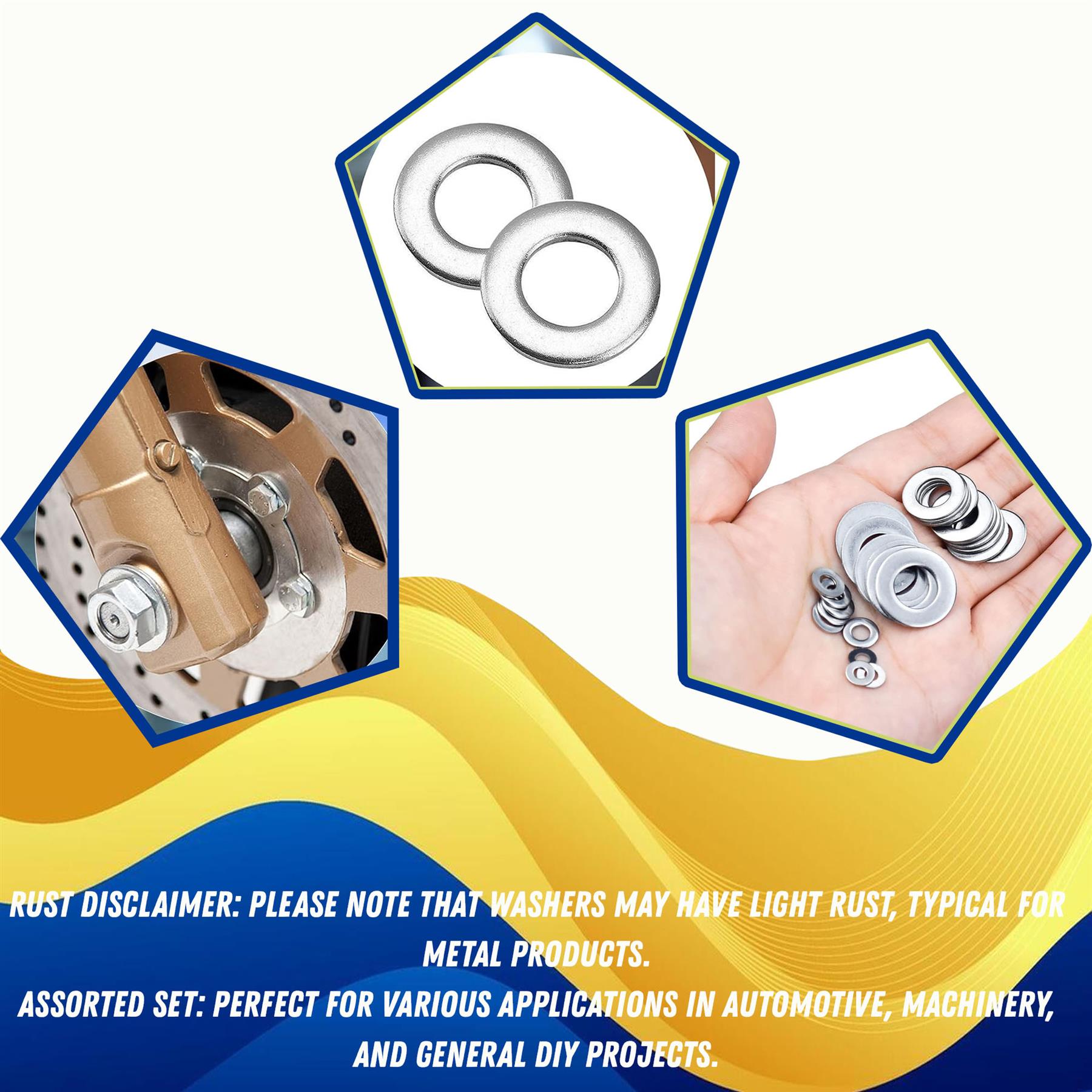 Rust Note: Washers may show light surface rust, which is normal for metal products and does not affect usability.