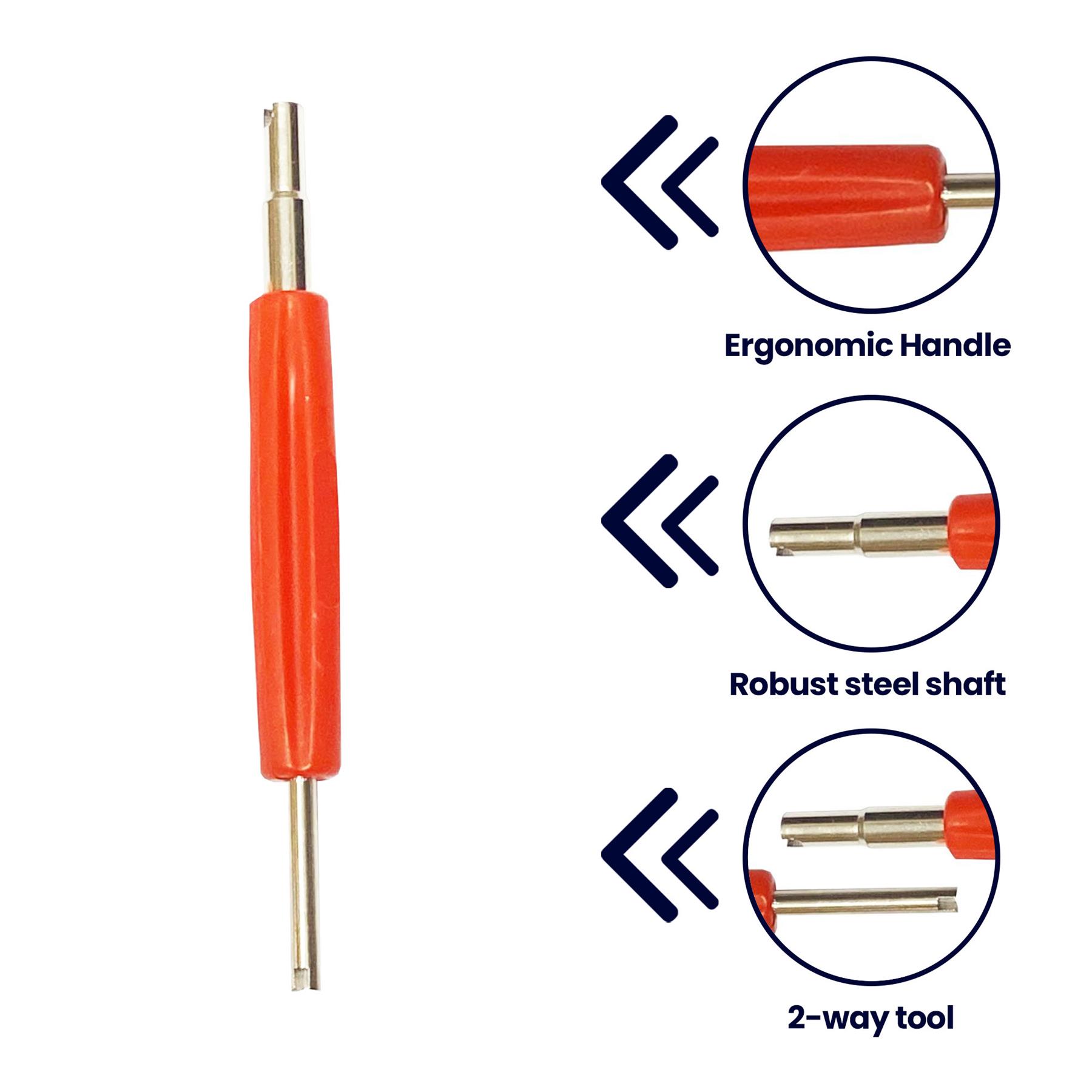 Efficient 2-Way Design: Dual-function tool key provides added versatility when handling valve cores.