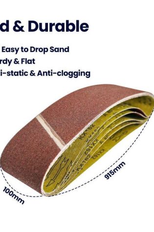 5 Pack Sanding Belts 100 x 915mm (80 Grit) Coarse Sander Sheets Sanding Belts