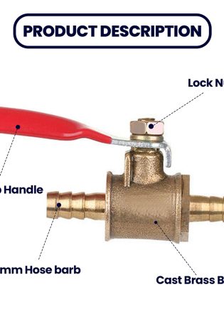 Brass Ball Valve 10mm Red Lever Inline Hose Barb Water Air Gas Fuel Shut-off