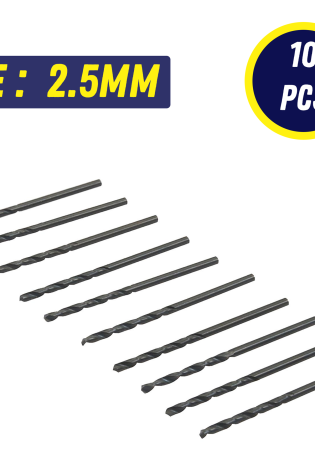 HSS Metric Jobber Drill Bit 2.5mm High Speed Set for Drilling Stainless Steel, Aluminum 10PCS