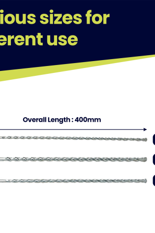 Masonry Drill Bits 400mm Long Sizes 8, 10, 12mm Masonry Wall Drilling Drill Bit