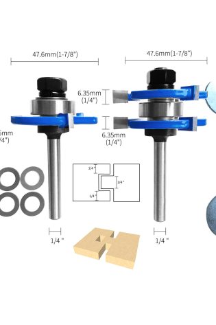 Tongue And Groove Router Bit 2PC Set 1/4″ Shank T Type 3 Tooth Cutter Washers