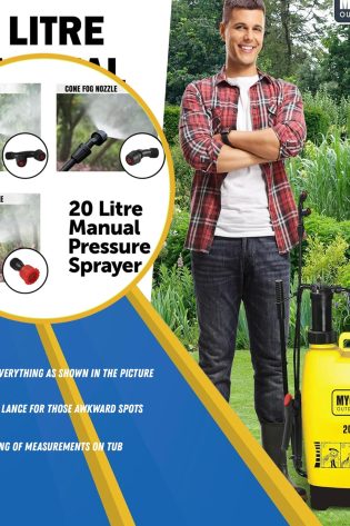 20L Knapsack Pressure Sprayer Backpack Water Spray Bottle with Angled Lance and 3 Nozzles for Garden